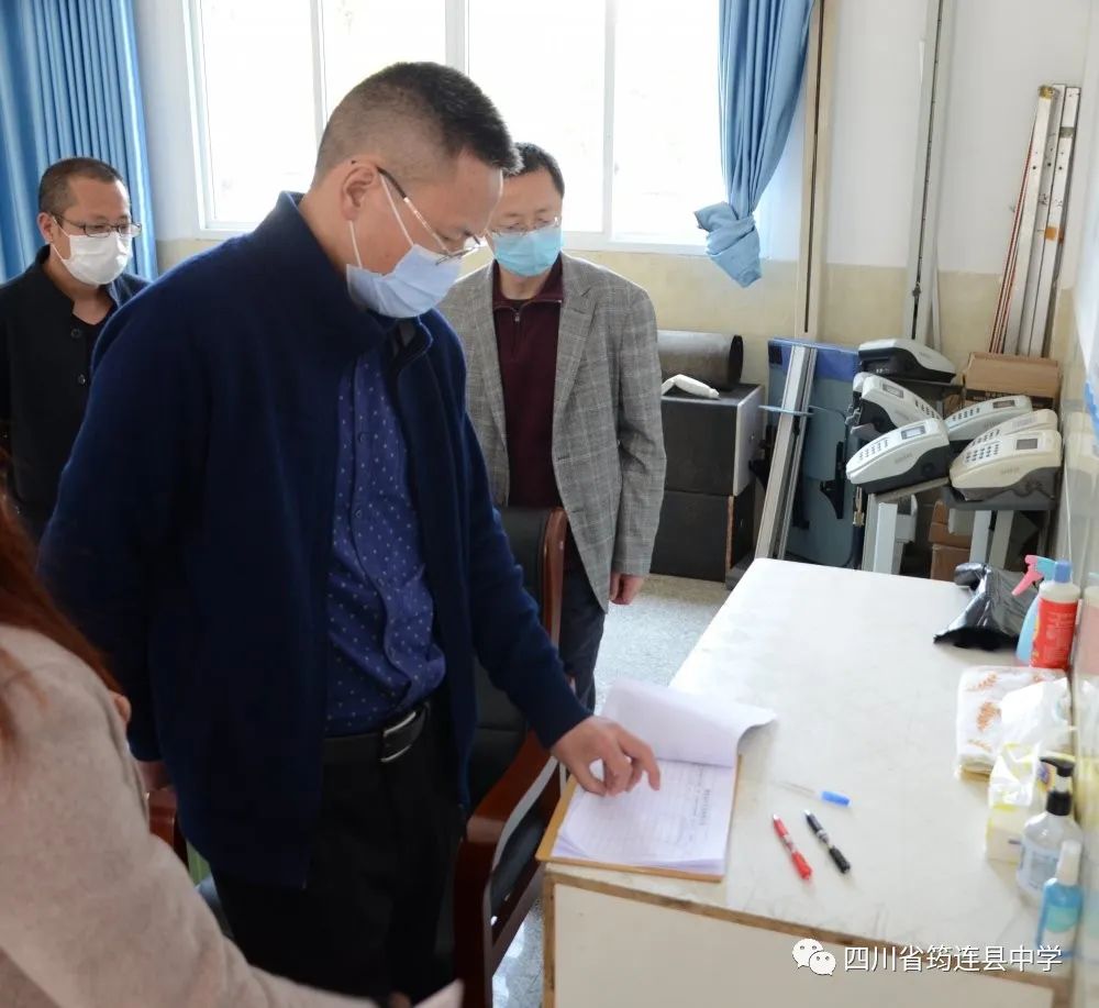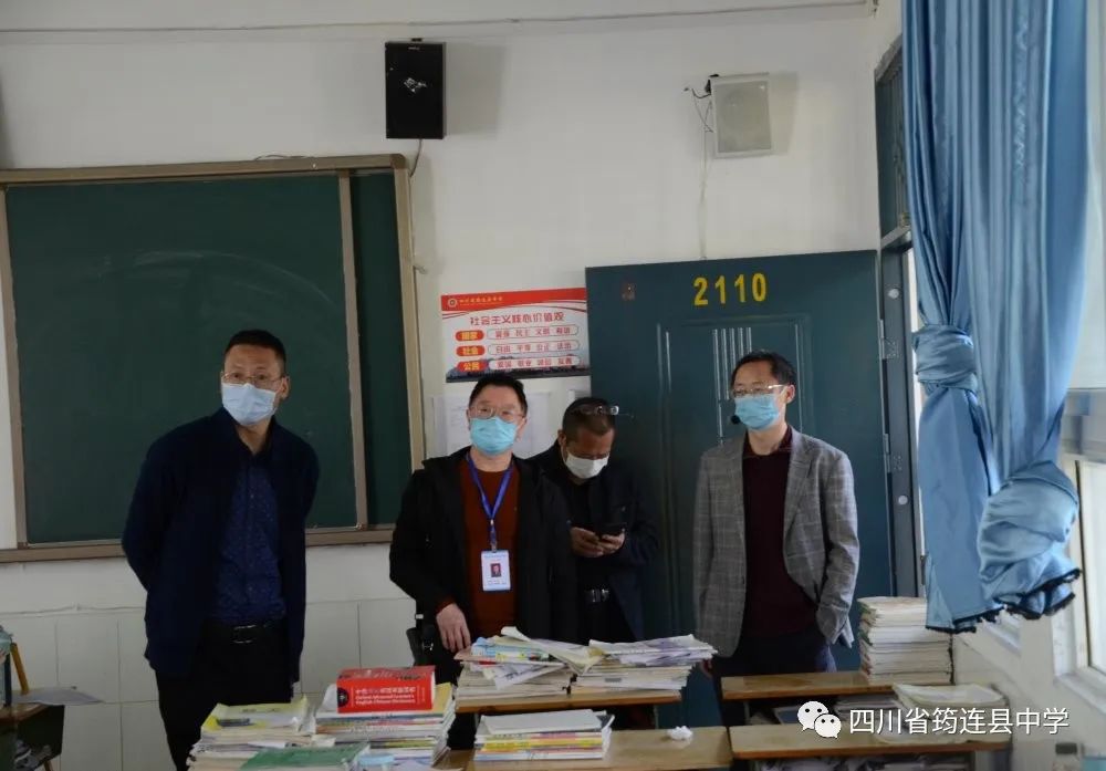 為進一步做好疫情期間的開學復課工作,確保廣大師生人身安全、校園和諧穩定,2020年4月8日上午,宜賓市政府教育督導辦主任張水一行到我校檢查高二年級開學復課工作,學校黨委副書記潘容、副校長方曉娟陪同檢查。